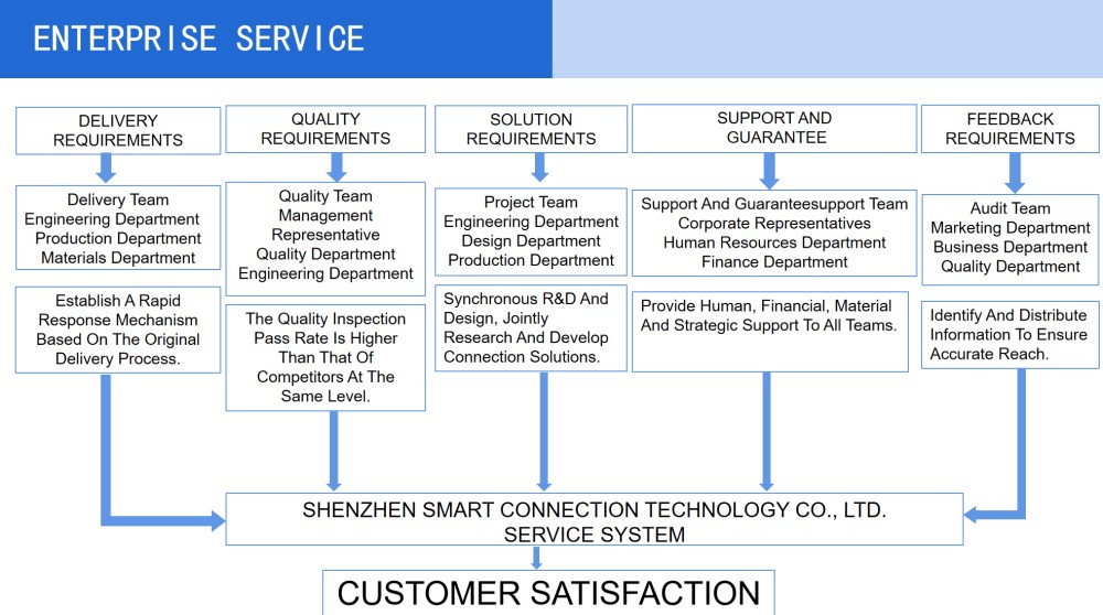 At Shenzhen Smart Connection Technology Co., Ltd., we provide complete support solutions for wiring harnesses, connectors, and accessories. From product design to after-sales service, our engineering team works closely with clients to deliver safe, reliable, and efficient wiring solutions for solar energy, automotive, industrial control, robotics, and medical applications.