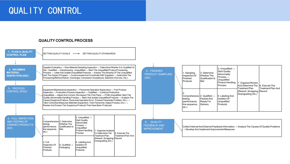 Final QA Sampling: Outgoing sampling inspections, abnormality handling, root cause analysis, and continuous improvement.